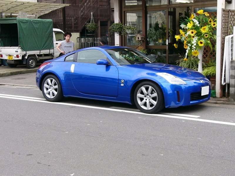 突然Hさんが来店されました。前々から一度Zに乗ってみたいという巧英(よしひで)君の願いを聞いてくれたのです。私もこの型の実車を見るのは初めてでした。カタログを見て「何んだこれZなの?」と言っていたのを忘れて「カッコイイー!」と。実は、二代目以降のZにあまり感動が無かったのです。 |